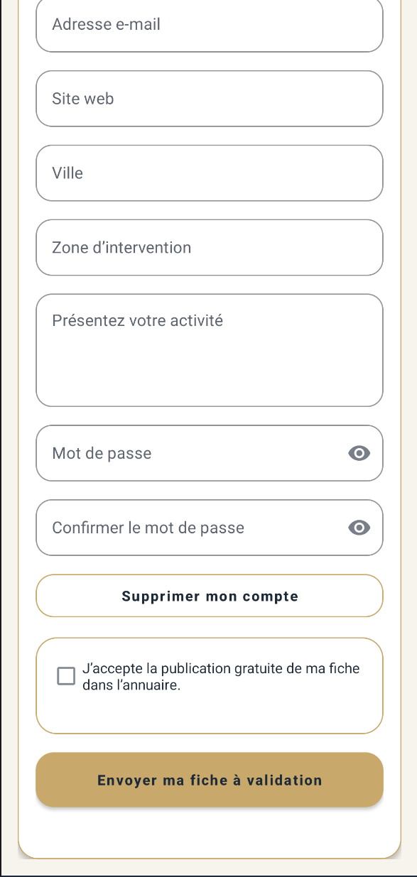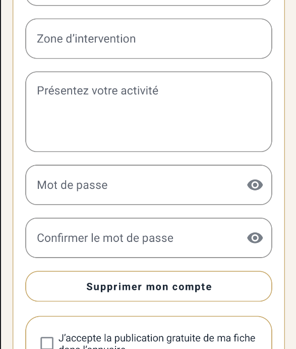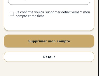 L’application Annuaire ArtisansLouhans permet aux artisans de demander la suppression de leur compte directement depuis l’application, via la fonction :